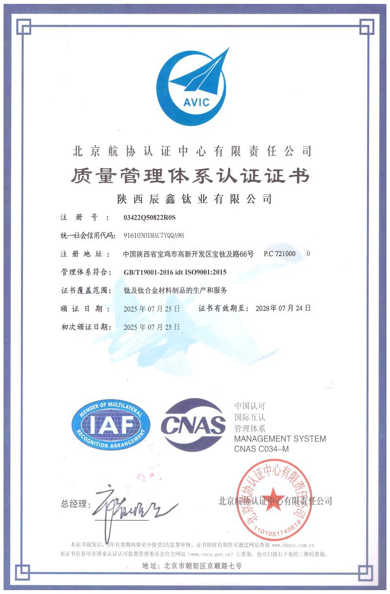 „Shaanxi Chenxin Titanium Industry Co“ ., LTD . yra patikimas aukštos kokybės titano ir titano lydinio gaminių gamintojas ir globalus tiekėjas „Titanium Full“ pramonės grandinės produktai . Jo išplėstas verslas apima tauriųjų metalų, tokių